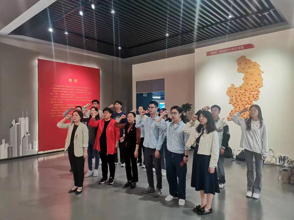 在示范馆,全体党员同志在讲解员的带领下深入了解黄埔区为企业营造良好营商环境,在绿色能源、新材料、高端装备等领域培育企业的做法和经验。教工第三党支部书记周玉梅、员工科技创新党支部书记谢仁崇结合新工科专业建设、员工科技创新主题开展现场微党课和专题讨论。最后,全体党员在公司党委书记陈郁芬的带领下重温入党誓词。