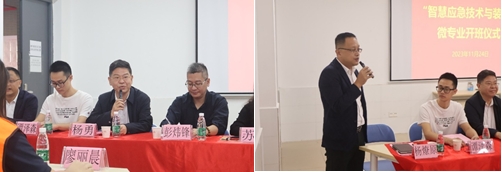 在开班仪式上,杨勇鼓励同学们在学习智慧应急技术与装备方面,要结合已学专业基础,学会交叉学习思考,指出“智慧应急技术与装备”微专业是面向未来的交叉新工科专业,在安全应急产业中大有可为。陈郁芬希望这次开班仪式能够成为又一个创新学习的起点,鼓励同学们真正学习到安全应急新技术知识,成为打开安全应急产业就业大门的钥匙。杨燎原在会议的最后热情邀请同学们参与联盟即将召开的中国2023年应急产业大会,希望同学们借此进一步拓宽知识面,激发同学们对安全应急技术学习的热情与信心。