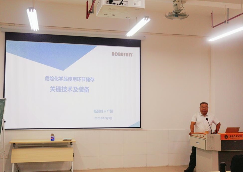 本次课程教学分为理论与实践两部分。在理论教学方面,杨超峰从“使用企业危险化学品的储存与现状”、“危险化学品分类、储存形式及要求”、“危险化学品储存装置关键技术”、“应用实例”等四个教学板块出发,重点介绍了危险化学品的定义以及各类储存形式,强调危险化学品的储存装置需要考虑其功能、环保、安全、应急、方便等特点。课堂上,杨超峰与同学们进行了多次互动,以引导的方式带领同学们学习危险化学品的储存技术与装备。在实践教学方面,杨超峰为同学们介绍了广州路本利安全科技发展有限公司有关危险化学品的储存装置和简单介绍使用方法,并耐心细致地为同学们解疑答惑,使同学们更加生动形象地了解如何去设计一台危险化学品的储存装置。教学过程中机电学子展现出求知成才、好学上进的良好风貌。