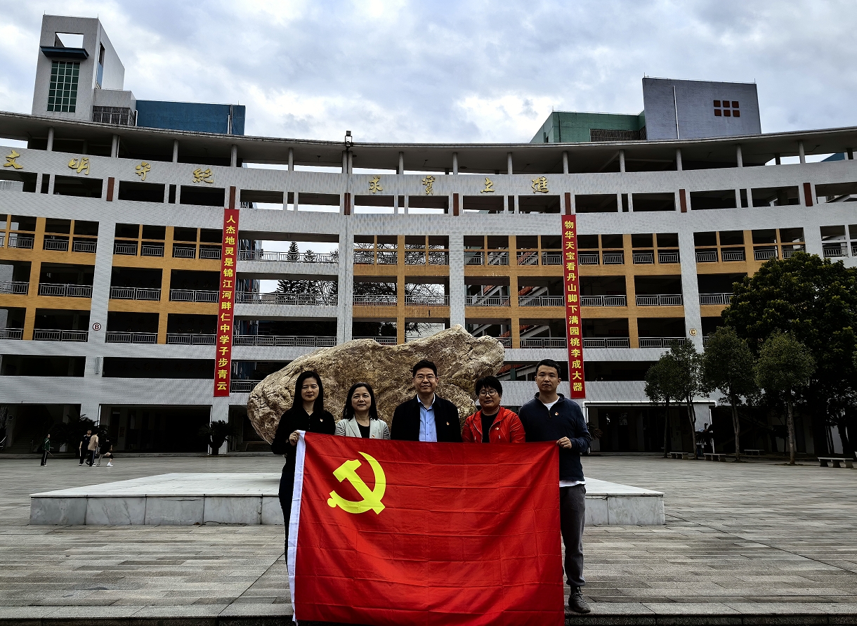 随后,邓文新一行来到仁化中学实地参观调研。仁化中学董事长何柏才详细介绍了仁化中学的办学历程、办学特色、发展情况和存在困难。邓文新围绕仁化中学发展存在的困难、优化教师队伍结构和引进优质教育资源等方面提出了意见建议。与会人员围绕如何在“双百行动”中进一步发挥党建引领作用,加强结对共建,解决存在问题进行研究讨论。仁化县“百千万”指挥办公室陈雪梅主任、“双百行动”驻县工作队副队长郭琪伟全程陪同结对共建活动。
