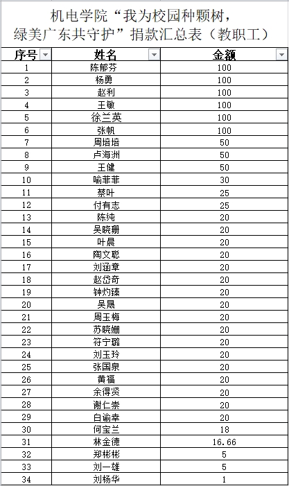 附:伟德国际1946“我为校园种棵树”师生捐款名单