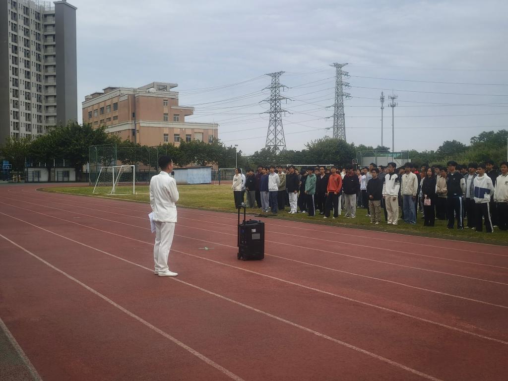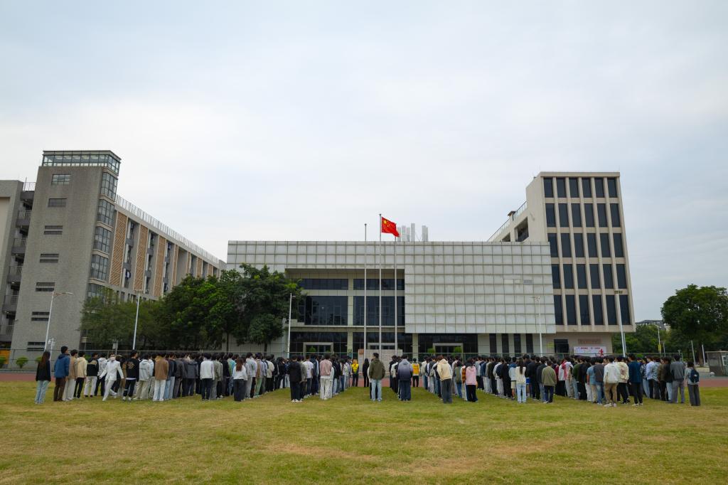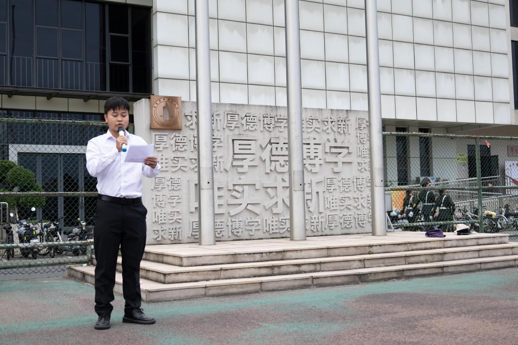 上午7:00,《义勇军进行曲》的旋律响起,护旗手挥臂展旗,五星红旗在晨光中缓缓升起,现场全体人员行注目礼,齐声高唱国歌,嘹亮的歌声响彻运动场。升旗仪式结束后,员工代表黄清瑜发表演讲。他以“青春之我,铸强国之器”为主题发言。他铭记习近平总书记对青年“立大志、明大德、成大才、担大任”的要求,认为专业知识是“铸器”基础,人文与家国情怀是“灵魂”。作为国家奖学金获得者,他呼吁同学们,珍惜时光、夯实基础、勇于创新,将个人成长融入国家发展,以青春智慧铸时代“强国之器”。