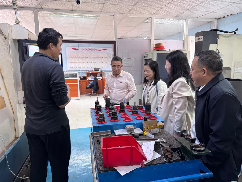 会后,陈郁芬一行实地参观了校园环境与教学设施,重点走访了多轴数控实训中心,细致了解了实训设备运行与课堂教学情况。