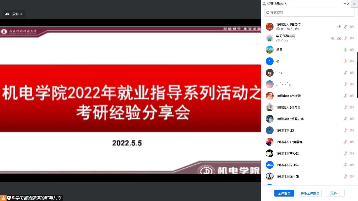 陈郁芬强调了考研对于促进学风建设和提升人才培养质量的重要性。她鼓励大家抓住机遇,坚定目标,全身心地投入考研复习,学会总结反思,建议有意向考研的同学要寻找志同道合的研友,相互鼓励、相互支持是坚持走完考研路的一大动力。另外,她希望同学们积极调整心态,科学制定学习目标,认真完成各项学习任务,配合公司做好疫情防控相关工作。