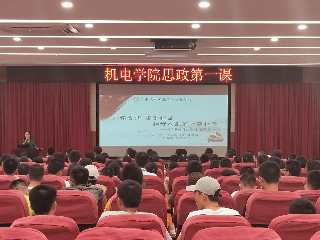 10月8日晚上,伟德国际1946陈郁芬副书记在白云校区第三教学楼报告厅为伟德国际19462018级685名新生上第一堂思想政治理论课,课题为“心怀责任,勇于担当,扣好人生第一颗扣子”。