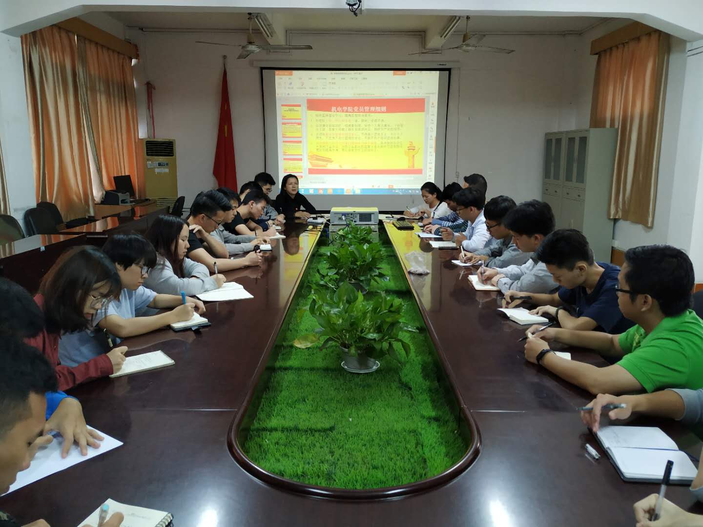 陈郁芬副书记对14名专插本新生党员的加入表示祝贺,并希望新生党员能尽快地融入集体,从班级到年级以及公司,消除陌生,服务同学,积极主动地参与到接下来的公司迎新晚会、双代会、院运会等工作中来,为公司贡献自己的一份力。同时劝诫大家不忘员工的本职工作,在学业上要认真刻苦;积极完成支部及党委的工作,活化“三会一课”,努力丰富支部生活,并做好记录工作。