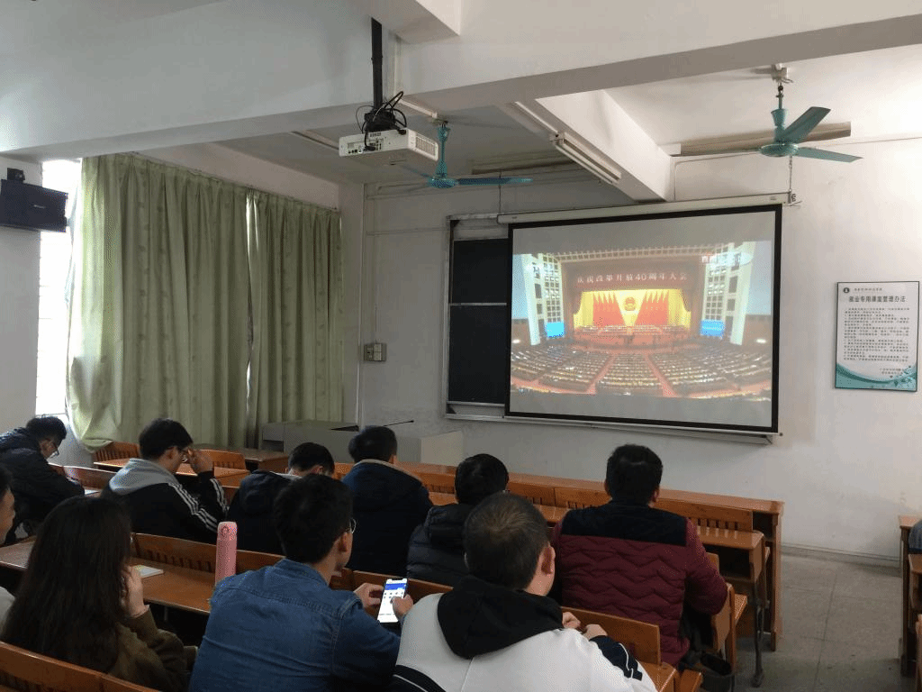 2018年12月18日上午,庆祝改革开放40周年大会在人民大会堂隆重举行。中共中央总书记、国家主席、中央军委主席习近平出席大会并发表重要讲话。公司党委组织员工党员、发展对象、积极分子、团学干部在教学楼401同步收看大会直播,认真学习领悟习近平总书记重要讲话精神。习近平总书记在大会上发表的重要讲话系统地回顾总结了中国改革开放40年走过的光辉历程,指出我们党作出实行改革开放的历史性决策,是基于对党和国家前途命运的深刻把握,是基于对社会主义革命和建设实践的深刻总结,是基于对时代潮流的深刻洞察,是基于对人民群众期盼和需要的深刻体悟。两个多小时的实况收看中,全体与会员工秩序井然,聚精会神,认真学习、领悟习近平总书记的讲话精神,会场上不时传来热烈的掌声。学院其他师生员工通过电视、网络等多种方式,收看、收听了大会盛况。