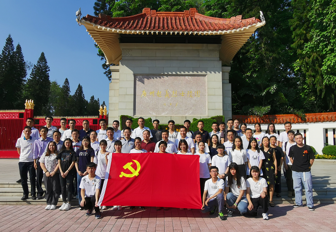 在广州起义烈士陵园,全体党员怀着深深哀思和崇高敬意,集体列队步行到广州起义纪念碑前,党委负责人方少武同志在纪念碑前为全体党员上了题为“继承先烈遗志,不忘初心、牢记使命”的微党课。给大家讲述了广州起义的背景、过程和历史意义,讲述了周文雍、陈铁军被捕后宁死不屈,举行刑场上的婚礼的革命故事,介绍广州起义烈士陵园的建设历史和整体布局。随后,全体党员到广州起义烈士墓前集体默哀、向革命先烈敬献鲜花,并在烈士墓前面对党旗举行集体宣誓,重温入党誓词。陈郁芬副书记还在烈士墓前深情朗读了广州起义三十周年之际,朱德、董必武和郭沫若同志书写的纪念广州起义的诗篇。