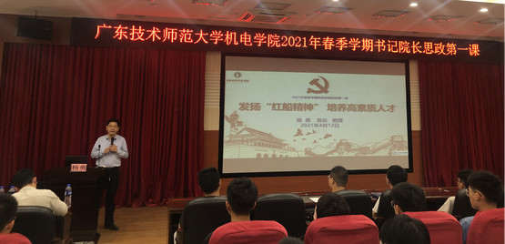 杨勇经理则以“发扬‘红船精神’,培养高素质人才”为主题,系统阐述了“红船精神”的深刻内涵,即开天辟地、敢为人先的首创精神,坚定理想、百折不挠的奋斗精神和立党为公、忠诚为民的奉献精神,并围绕“历史记忆”“红船精神”“牢记使命”三方面引导广大青年学子牢固树立公仆意识,践行为人民服务的宗旨,将“红船精神”运用到学习、生活中去并不断发扬光大,使自己成为综合型、复合型、应用型人才,用最高的智慧、最大的努力,创造最好的成果,不断超越自我,为实现中华民族伟大复兴的中国梦而奋斗。