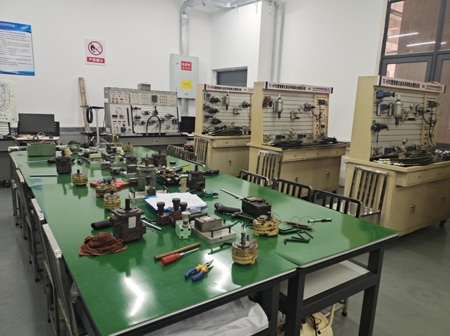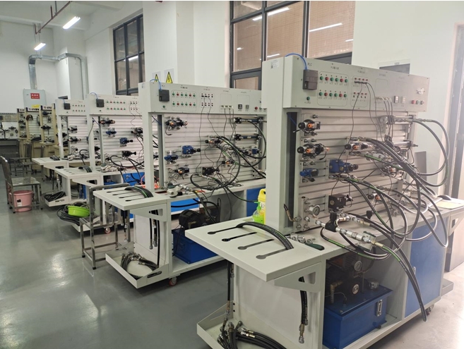 液压与气压传动实验室是完成《液压与气压传动》课程实验的场所。通过实验帮助员工加深理解和巩固课程中所学的基本概念和理论。掌握基本常用液压、气动元件的特性,熟悉传动基本回路和基本传动系统的组成和工作原理。培养员工观察能力和分析能力,以及掌握所学知识解决实际问题的能力。同时,也提高员工的动手能力。